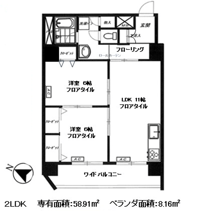 | 賃貸面積 / バルコニー面積 | 58.91㎡ / 8.16㎡ |
